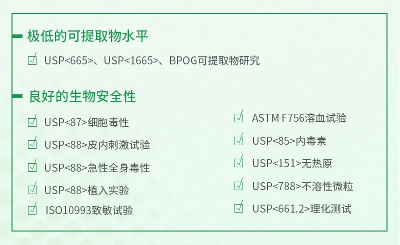 ◆ 制品经权威第三方检测,,,,,,具有极低的可提取物水平和优异的生物清静性