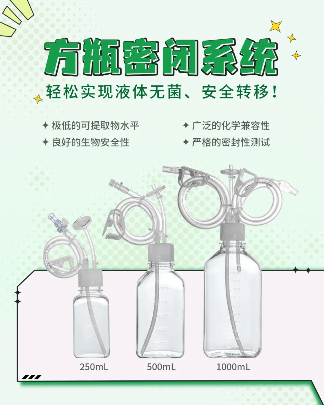 洁特生物新推出作育基方瓶密闭转移系统,,,,,,,可用于细胞治疗、基因治疗、抗体和疫苗等生物药研爆发产历程中的液体转移,,,,,,,可实现全关闭式无菌液体转移,,,,,,,最洪流平降低污染危害!