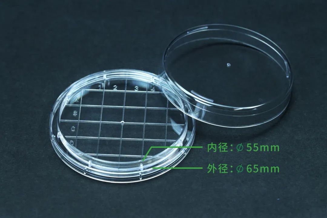 利便菌落计数与标记皿底带计数分格(10×10mm)与数字标识,,,,,,,,便于菌落计数与标记