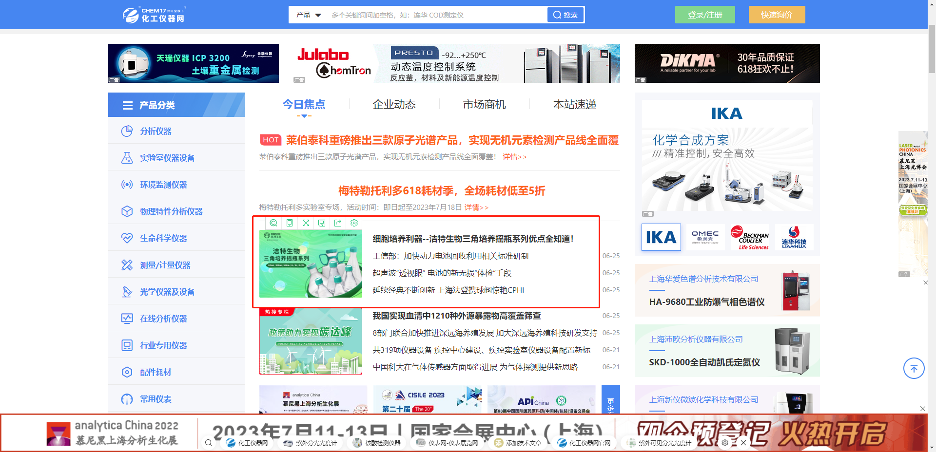 除了线上媒体推广及感恩回馈运动,,,,,,,洁特生物还起劲加入线下种种行业展会,,,,,,,如7月11-13日第十一届慕尼黑上海剖析生化展,,,,,,,7月5-7日2023年日本生物手艺、制药及实验室展,,,,,,,7月5-7日2023年南非国际实验室、剖析、诊断及生物手艺专业展览会等。。。。。。。。