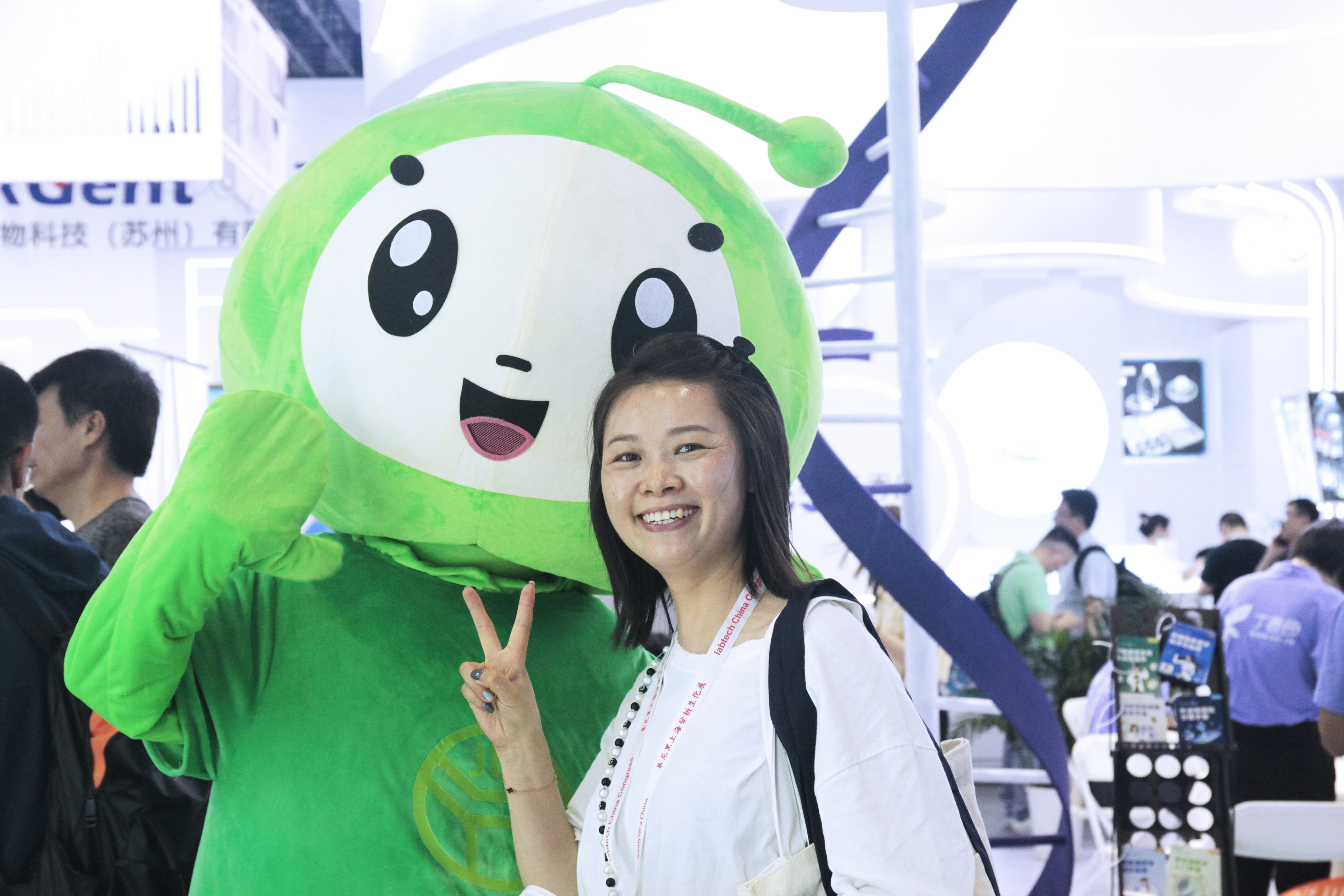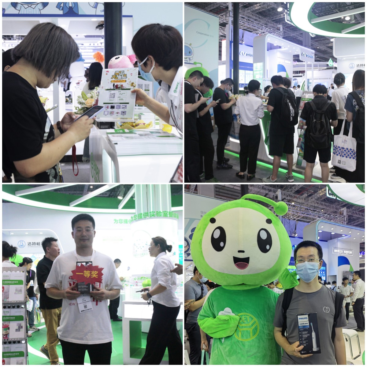 洁特生物以72平特装展台艳服出席本次展会,,,,,展台通体VI绿清新亮眼,,,,,C位圆形产品展示区时尚大气,,,,,在可爱的小洁小特IP公仔遮掩下更添一份萌趣。。。。。与此同时,,,,,更有小特等身人偶与来访客户交流互动,,,,,嗨翻全场,,,,,吸引了众多海内外参展观众前来旅行打卡。。。。。